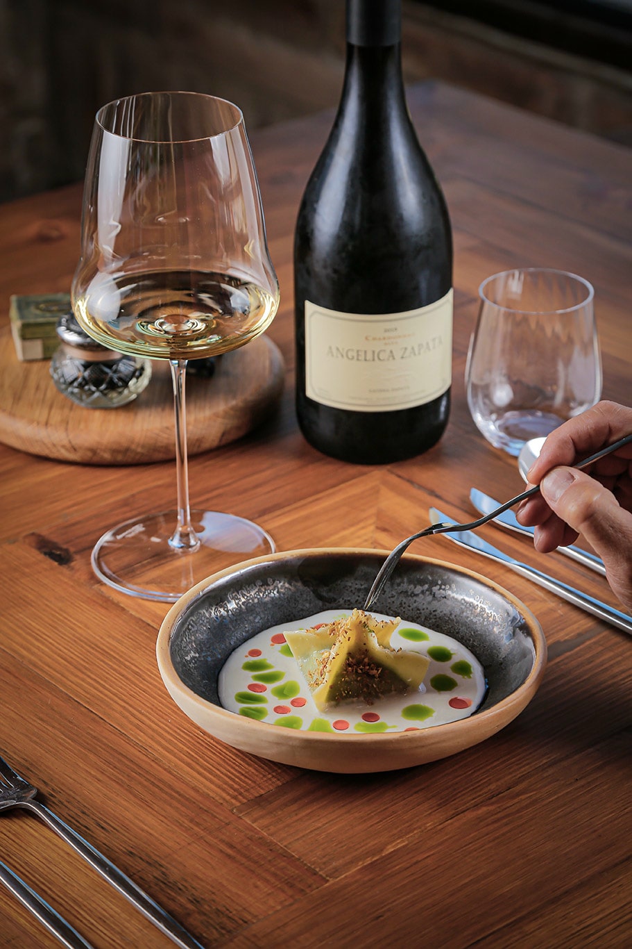 Das Michelin-Team lobt den mutigen und poetischen Ansatz: Gäste beginnen ihren Abend mit einem Glas Wermut in der Brennerei, bevor sie in eine kulinarische Reise eintauchen – ein Tasting-Menü, das in mehreren Etappen die DNA Mendozas zelebriert. Eine der ikonischsten Kreationen heißt "montaña rus" – eine kulinarische Achterbahnfahrt, bei der Weiß- und Rotweine abwechselnd serviert werden. So treffen etwa Malbec und Rindfleisch aufeinander, um Kraft und Tiefe zu spiegeln, während Saint Felicien Nature mit frischen Snacks kontrastiert und seine spritzige Leichtigkeit entfaltet.