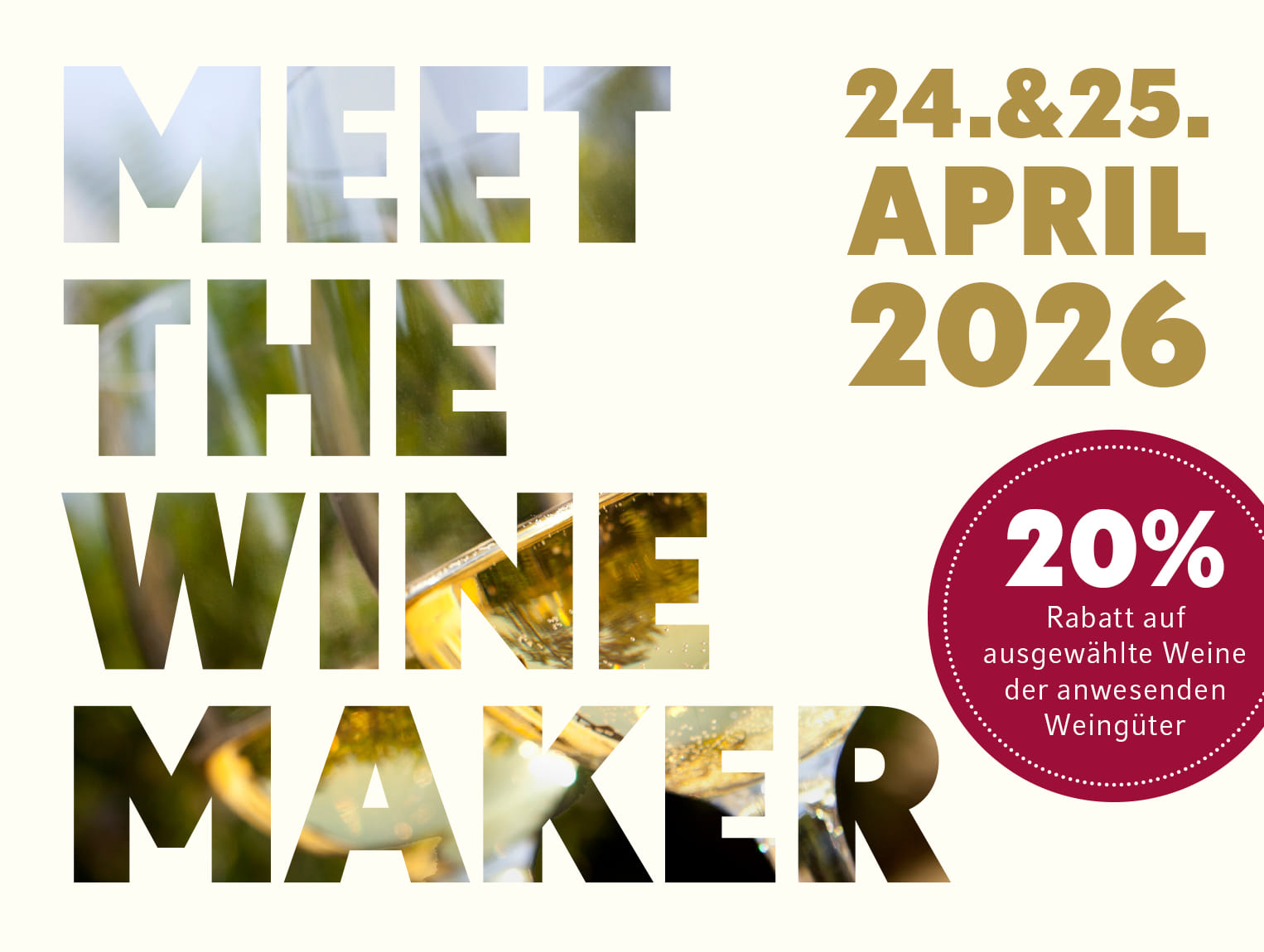 *Der Rabatt gilt ausschließlich an den aufgeführten Event-Tagen an den Standorten von Mövenpick Wein Deutschland. Der Rabatt ist nicht gültig im Onlineshop.
